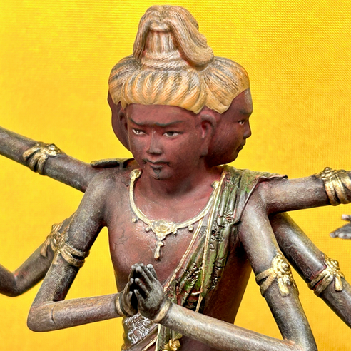 若々しい肉体に、3つの顔と6本の腕が特徴です。