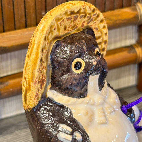 小さいながらも存在感のある信楽焼のたぬき飾り。